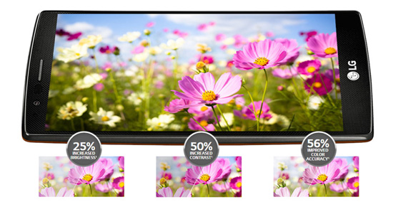 مدیران و طراحان و حالا طرفداران LG به نمایشگر جدید خود در G4 میبالند. 20 درصد افزایش رنج نمایش طیف رنگ ها، 25 درصد روشنایی بیش تر و 50 درصد افزایش شفافیت در مقایسه با G3 با همان مقدار مصرف انرژی چیزی است که در نمایشگر جدید LG به آن دست یافته است. همانطور که میدانید هنوز نمایشگری تولید نشده تا بتواند طیف کامل رنگهای قابل مشاهده برای انسان را نمایش دهد. اما از این میان شاید برای شما جالب باشد بدانید که نمایشگر جدید LG طیف رنگهای وسیعتری را تحت پوشش قرار میدهد. این نمایشگر 98 درصد از رنگهای استاندارد DCI (طرح سینمای دیجیتال) به خصوص در طیف رنگهای آبی و قرمز را میتواند نمایش دهد، اما هنوز قادر به نمایش کامل طیفهای رنگ سبز نیست. این نمایشگر رنج دقیقتری از رنگ های قرمز را میتواند نشان دهد، اینها همان رنگ هایی هستند که چشم انسان به دیدن تنوع بیشتری از آنها عادت کرده و عملا نمایش آنها برای اولین بار در صفحههای گوشی های هوشمند یک موفقیت بزرگ است. این پنل همانند پنلهای OLED میتواند عمق بیشتری از رنگها را در گیرند و رنگها را زندهتر نمایش دهد و این در حالی است که انرژی کمتری نسبت به پنل های OLED مصرف میکنند.