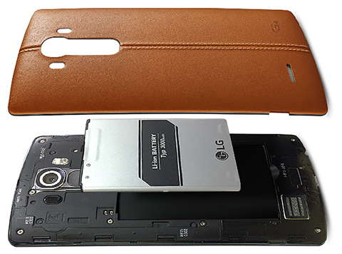 لبهی بالایی گوشی درگاه اینفرارد و میکروفون دوم مکالمه را روی خود جا داده است. لبه های سمت راست و چپ همانطور که احتمالا حدس میزنید خالی هستند، هیچ کلید، شیار یا درگاهی در آن ها به چشم نمی خورد. لبهی پایینی هم به ترتیب از چپ به راست میزبان جک 3.5 میلی متری هدفون، میکروفون اصلی مکالمه و پورت MicroUSB است. اما قاب پشتی گوشی شاید جایی باشد که اکثر کاربران بخواهند، در مورد آن بیشتر بخوانند. جنس مرغوب پلاستیک قاب پشتی و ساخت با دقت آن باعث شده تا کاربر احساس کند یک گوشی با قاب فلزی را در دست گرفته است. از طرفی طرح لوزی الماسی شکل قاب پشتی جلوهی خاصی زیر نور به آن میبخشد. در بالای این قاب شاهکار 16 مگاپیکسلی LG قرار دارد. طبق سنت چندین ساله طراحان LG در زیر این دوربین کلیدهای روشن/خاموش و کنترل صدا مشاهده می شوند. این کلیدها در مقایسه با G3 کمی کوچکتر شدهاند و کلید روشن/ خاموش از حالت دایرهای به حالت مستطیل با دورهای گرد درآمده است. در سمت چپ دوربین حسگر لیزری تشخیص فاصله برای فوکوس بهتر هنگام عکاسی و در سمت راست دوربین هم فلش LED از نوع دوگانه با دو نور سرد و گرم قرار دارد تا روشن کردن صحنهی عکاسی در هر شرایط نوری را ممکن کند. در پایین قاب پشتی هم مثل G3 شاهد اسپیکر اصلی گوشی در سمت چپ هستیم اما این بار نوع منفذهای خروج صدا روی قاب تغییر کرده و تعداد زیادی حفره در کنار هم قرار گرفتهاند تا یک حفرهی کلی وجود داشته باشد. در کنار این حفره ها هم برند G4 به چشم می خورد. شاید این لوگو برای تشخیص G3 و G4 از پشت در این قسمت قرار گرفته باشد!