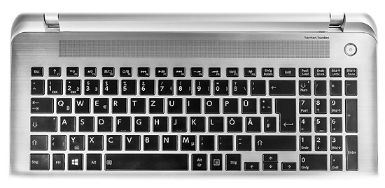 توشیبا Satellite S50 مجهز به کیبورد جزیره ای است که کلیدهای آن از جنس پلاستیک مشکی رنگ مرغوب است. کلیدها از هم فاصله مناسبی دارند که تایپ کردن را به عملی لذت بخش تبدیل کرده است. کلیدهای کیبورد سطحی صاف دارند و برای فشردن آنها فشار زیادی لازم نیست. اندازه کلیدها تقریبا 15×15 میلیمتر است که اندازه ای مناسب محسوب میشود. خوشبختانه هر دوی کلیدهای Caps-Lock و Num-Lock دارای LED نشانگر وضعیت هستند که برای کسانی که تایپ کردن برایشان در کار با لپ تاپ ارجحیت دارد، یک مزیت شمرده میشود. کیبورد Satellite S50 دارای نور پس زمینه سفید است که میتوان در 3 حالت آن را تنظیم نمود. چینش کلیدهای این کیبورد آلمانی بوده که البته برای کسانی که قدرت تایپ بالایی دارند مشکل خاصی محسوب نمیشود، زیرا وقتی شما حالت زبان را بر روی انگلیسی قرار دهید، جایگاه حروف به صورت استاندارد بوده و شما به راحتی میتوانید به عمل تایپ بپردازید.